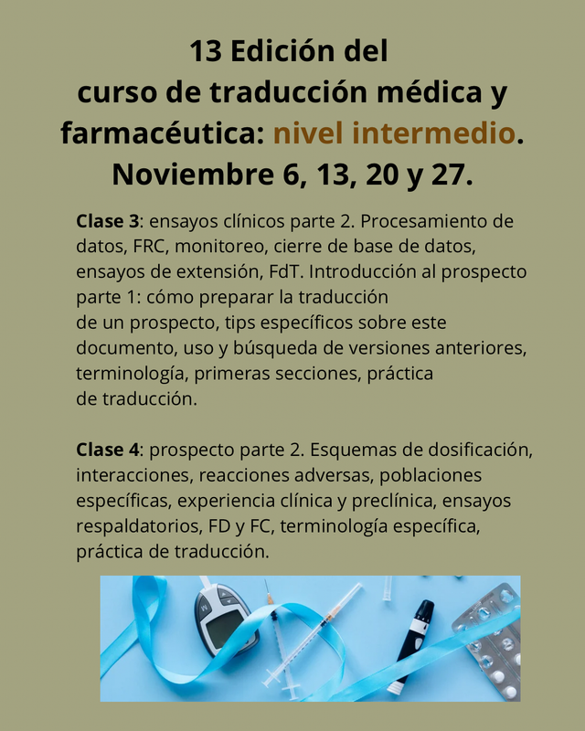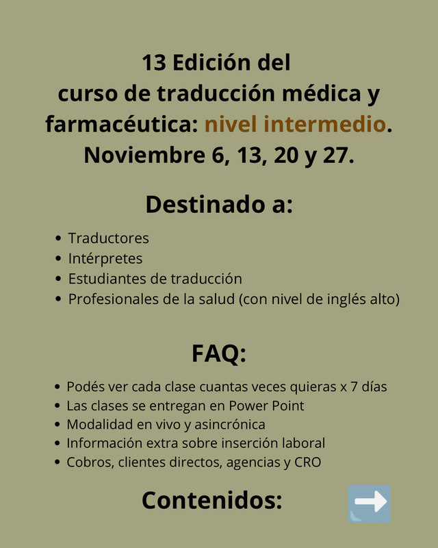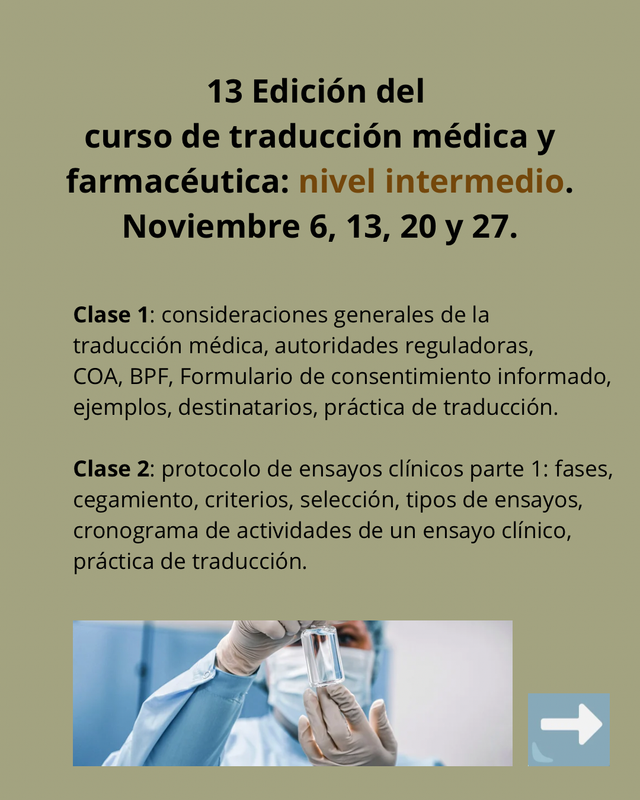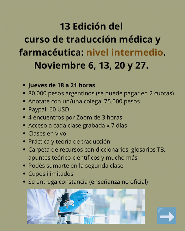 CURSO DE TRADUCCIÓN DE TEXTOS MÉDICOS Y FARMACÉUTICOS: NIVEL INTERMEDIO. EN VIVO POR ZOOM. 4 ENCUENTROS.